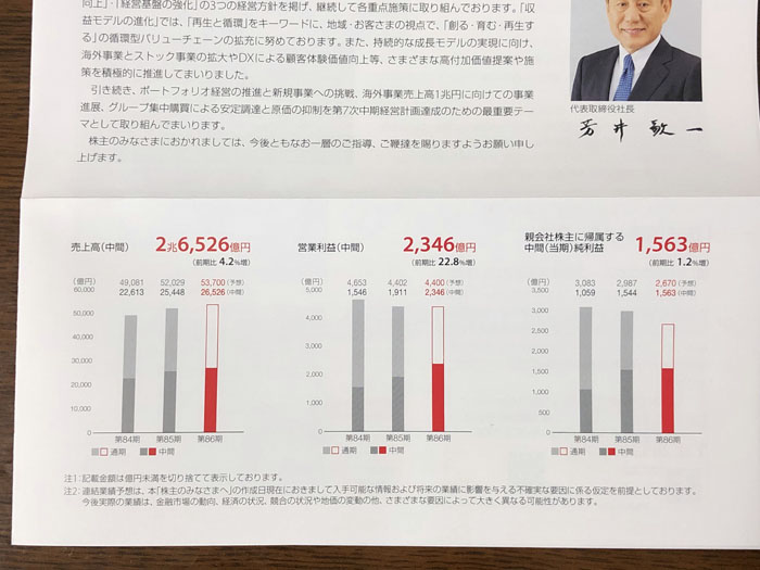 中身は「配当金計算書」「配当金のお受け取り方法について」と「株主のみなさまへ」の株主通信です。ホント末端の株主にまでありがとうございます。