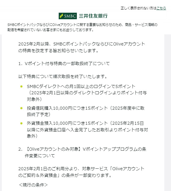 SBI証券と三井住友銀行コンビがまたまた改悪! もうさぁ何も期待しませんよ・・・。 まだ1年しか経ってないのに。 投資信託購入10,000円につき15ポイントもなくなるのか! 今後カードでの支払いは楽天カードだな。還元1%だし どうせOliveにしたところで何れにしろまた改悪するんでしょ? なんだかんだOliveの契約者増えてないんだろってwww 誰がOliveなんかにしますかってーの。