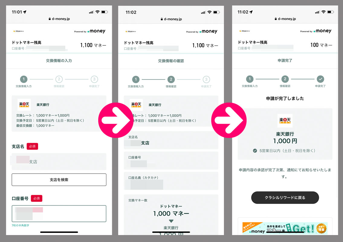 クラシルリワードのコインが貯まったのでドットマネーに変換からの換金手続き|2024.12.14 クラシルリワードのコインが33,000になり変換するとドットマネーも1,000を超えるので換金手続きまで・・・。 (詳しい変換方法と換金方法はこちらをご覧ください) 前回が11月17日でしたので1ヵ月掛かりませんでした。おかしいな?レシチャレもしてないのに・・・。どうやら移動のコインが貯まりやすくなったのかも?「移動モード」という設定が出来ました。(真意は不明) クラシルリワードは楽天銀行口座に紐づけています。 今日が土曜日なので火曜日の入金かな? クラシルリワードなので「ニッセイNASDAQ100インデックスファンド」へ投入予定です。 ==================== 12月17日 楽天銀行口座にCYBERAGENTから入金がありました。