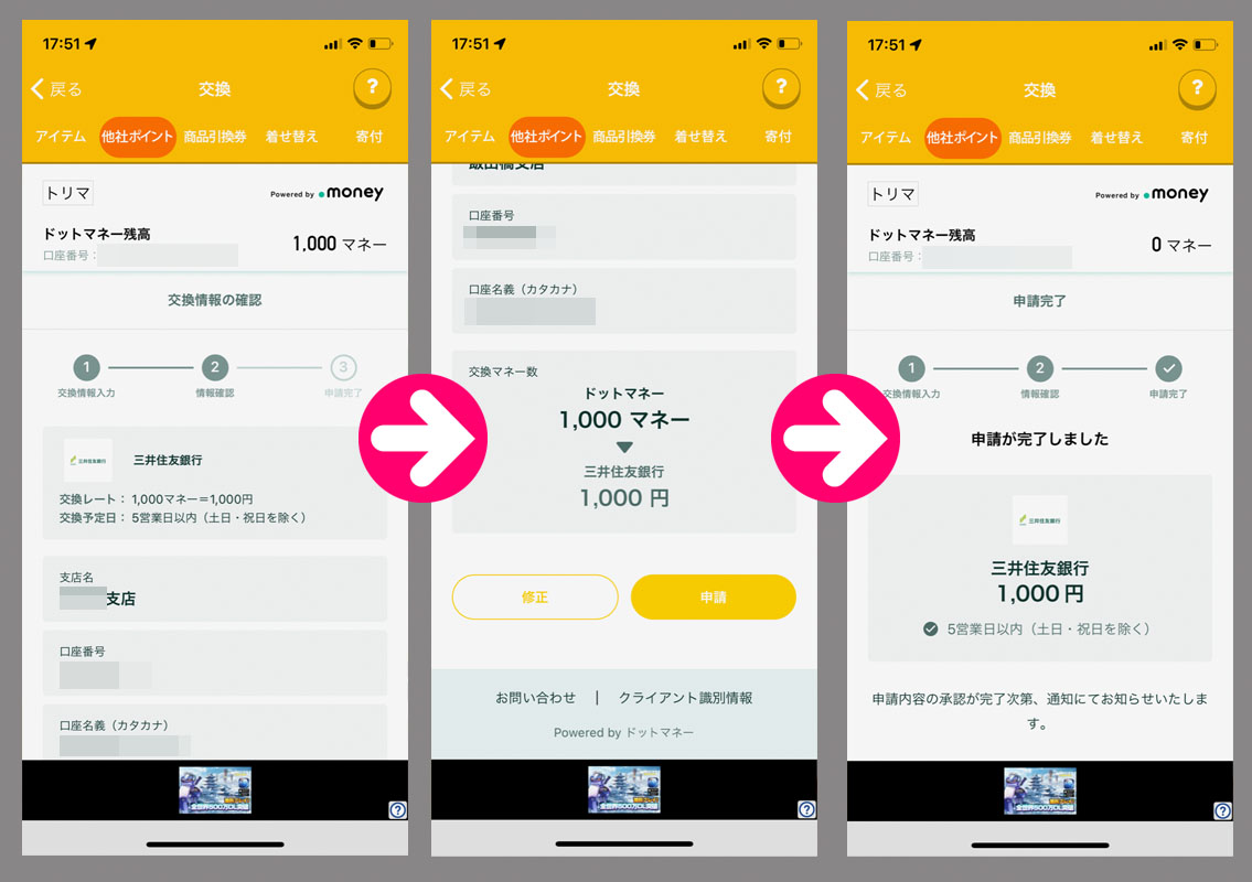 トリマで貯めたマイルをドットマネーに変換からの換金へ|2024.12.14 最近は時期が「クラシルリワード」と被るようになりましたが「トリマ」もマイルが120,000マイルになったので換金の手続きへ・・・。 (詳しい換金手順はこちらをご覧ください) トリマは三井住友銀行口座に紐づけています。 トリマなので「iFreeレバレッジFANG+」に投入予定です。 足元では急上昇のFANG+。何が引っ張ってるんでしょうか?あまり注視してませんので状況が分かりませんが・・・。騰がる事は良い事! ==================== 12月17日 三井住友銀行口座にCYBERAGENTから入金がありました。