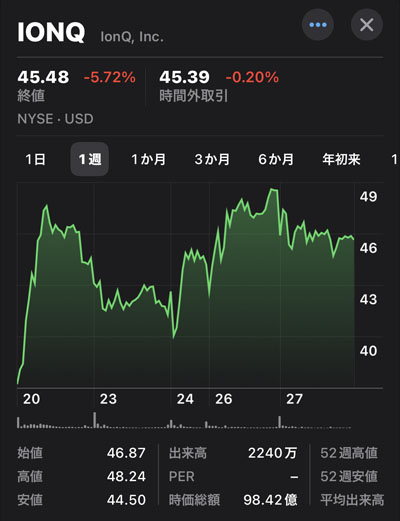 中期的にはIONQが量子で勝ち組になれるか否か・・・ビックテックに飲み込まれず、もし勝てればAPPLEやTESLAになってもおかしくはない。個人的にCEO(もう結構なおじさん)にあまりインパクトがないような気がするのが気がかりかなw