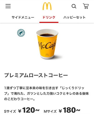 マクドナルドで一番安価な「プレミアムローストコーヒー Sサイズ」ですら買えないですね~