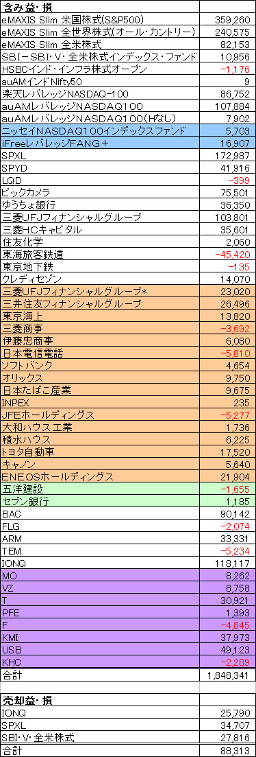 日本株は今年から新NISAが始まり年初は大きく上げたのでその頃に買った銘柄は含み損も出ています・・・がこちらも配当お目当てなのでそれほど気になりません。