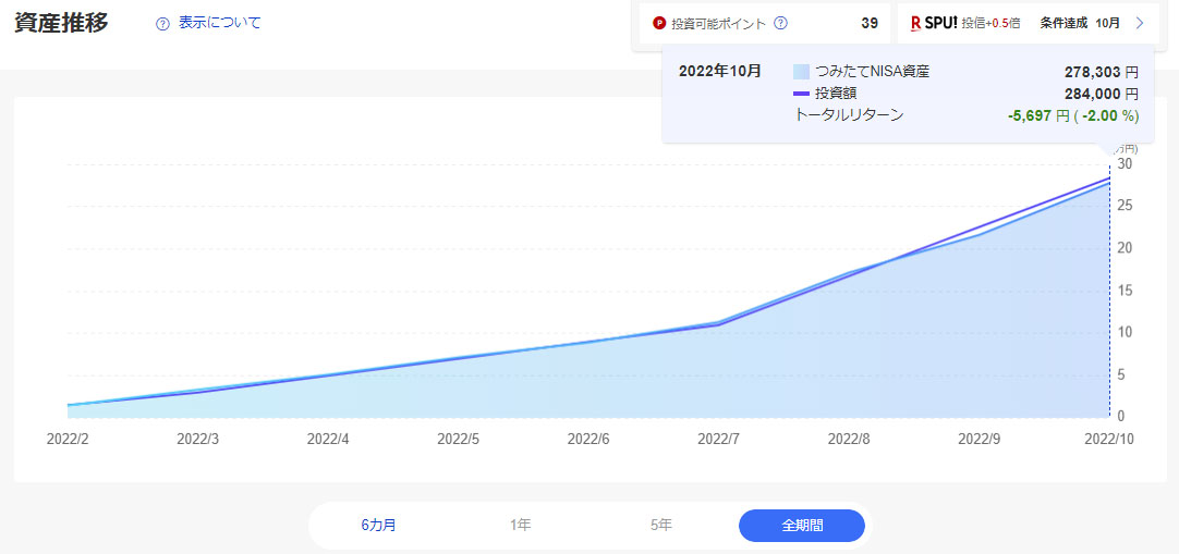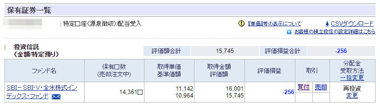 SBI証券は地味に積み立てています。Vポイントでスポット1,000円買い増ししましたが基本は積立放置です。