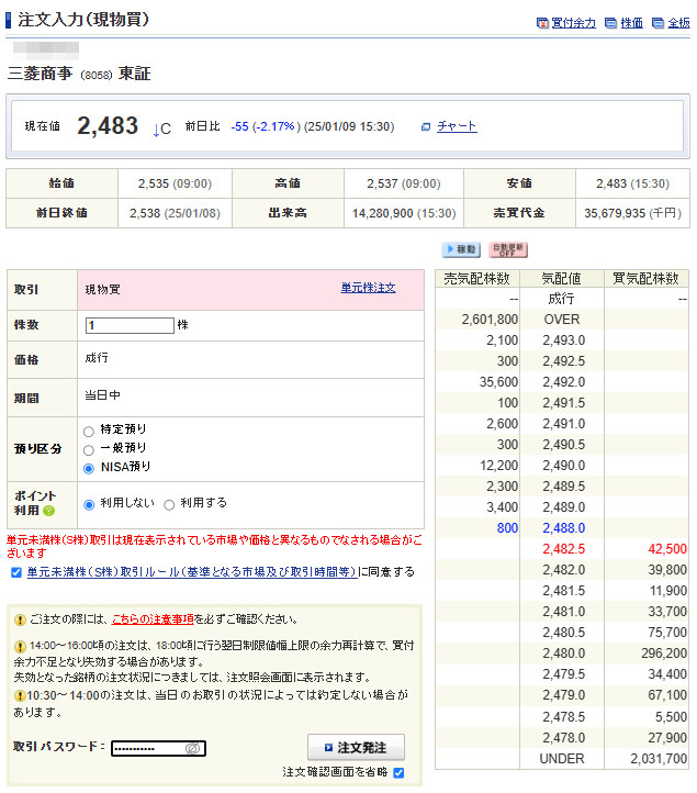 正月明けで資金がないのですがせっかくですので1株だけ。。。