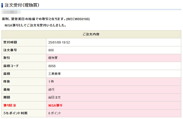 資金不足は否めない。。。NISA口座で1株だけw