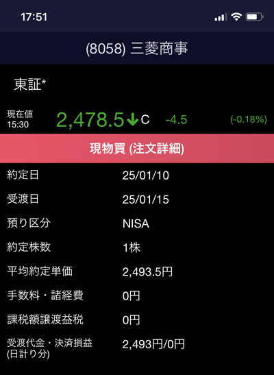 2,493.5円で約定しました。