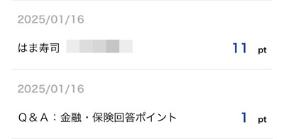 「はま寿司」で会計は2,500円ぐらいだったと思います。どういう計算で11ポイントなのかは謎w
