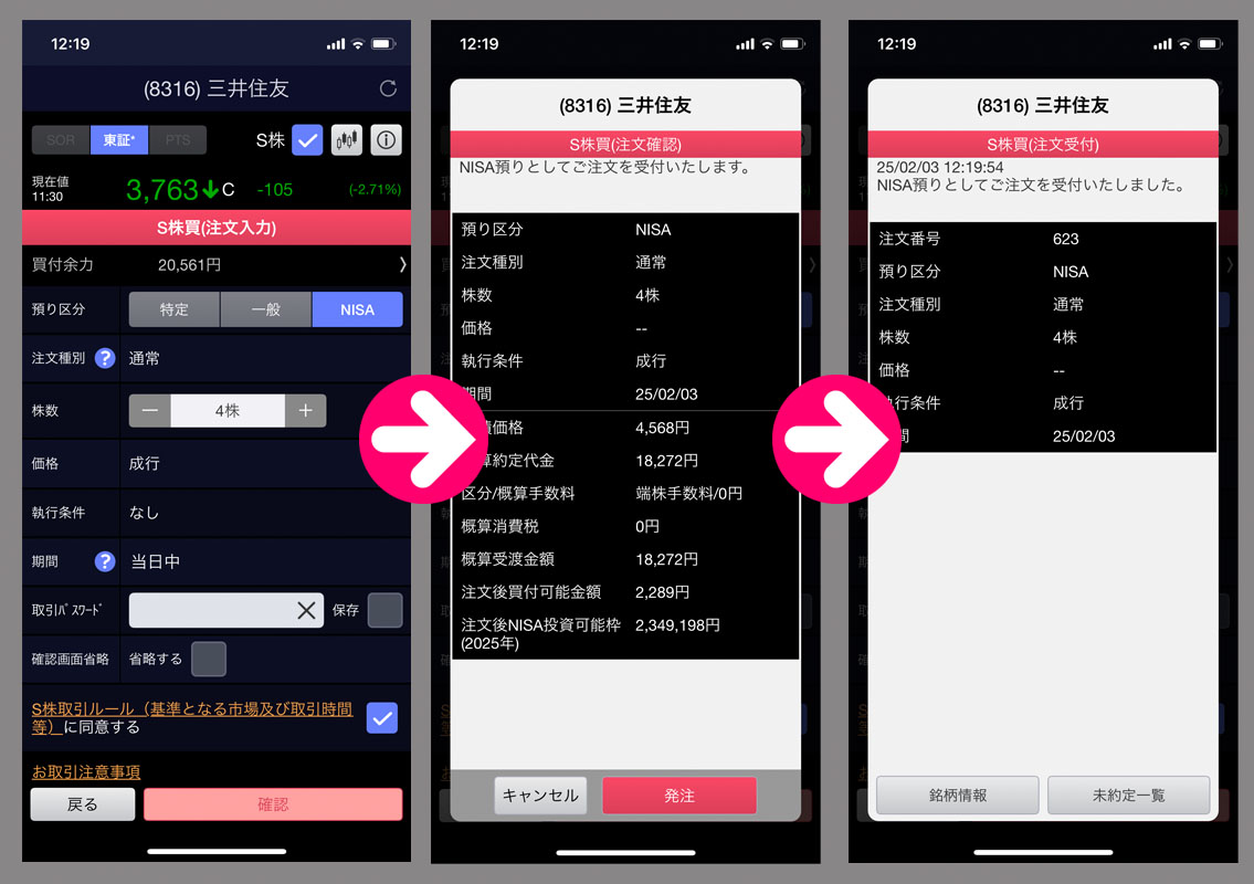 これで「三井住友フィナンシャルグループ」は全てNISA口座で28株の保有で平均取得単価は2,817円となりました。できれば3,000円切るところで単元にしたい。