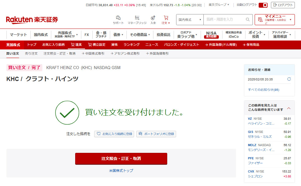 ※KHCのほかに2銘柄を指値で買い注文していますがかなり低く入れてるので長期です。刺さったら公開しますwww