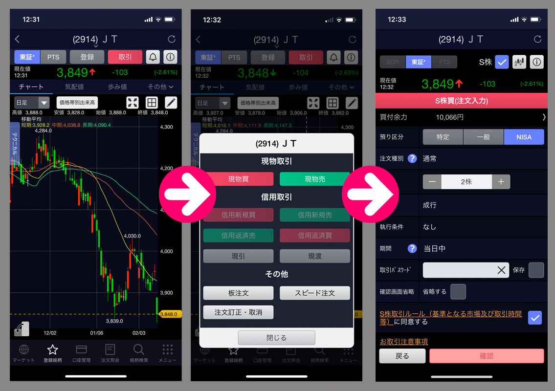 注文時からは少し下げて3,833!良かった。これが今日の終値です。
