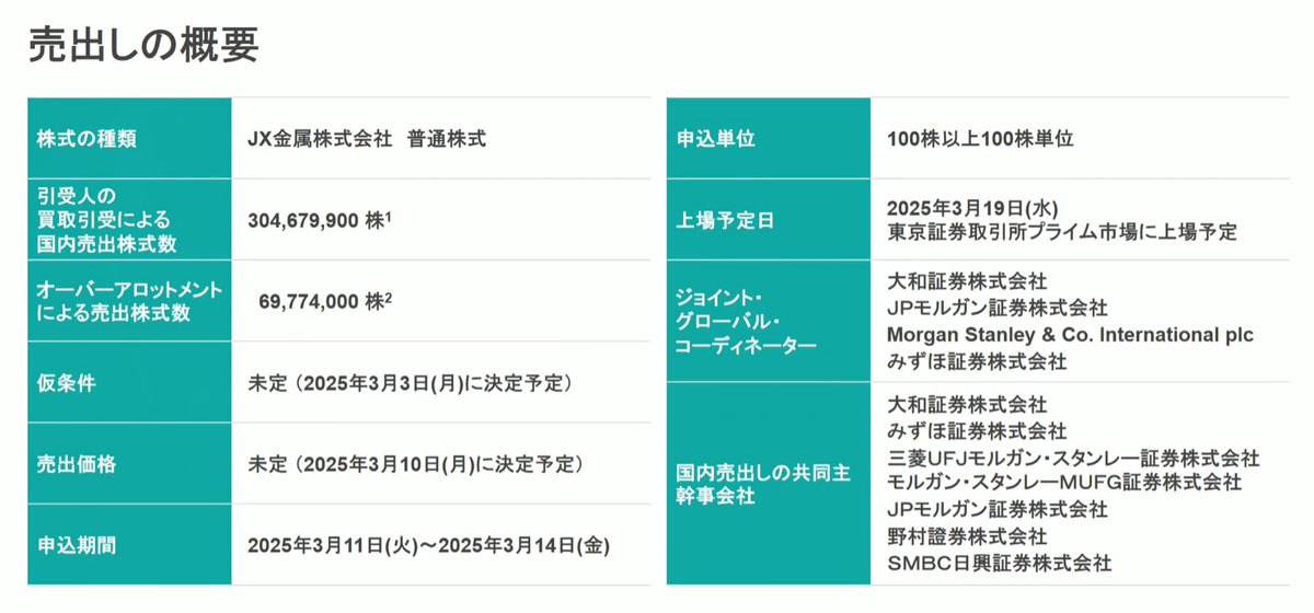 3月19日に東証プライムに上場するJX金属のIPO予定等です。