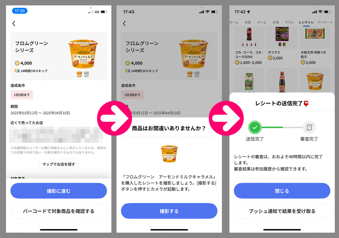 このレシチャレは1日5回までOKでしかも1枚のレシートで5回応募できます(応募自体は5回しなければなりません)