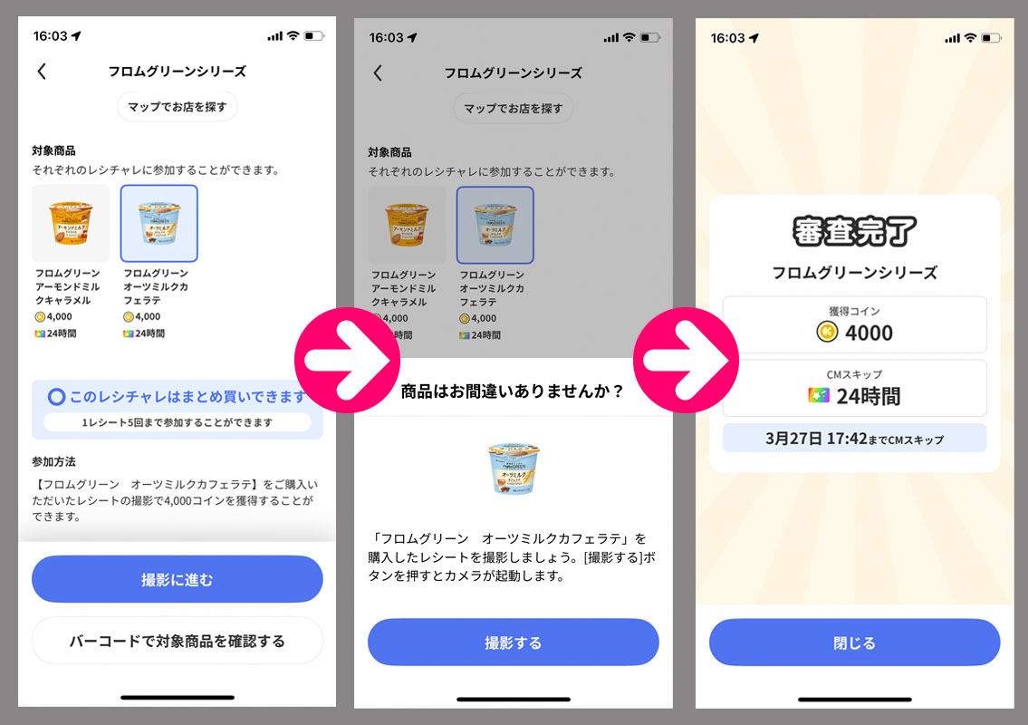 「フロムグリーンシリーズ」はフレーバーごとに応募リンクが違うのに気が付かず「アーモンド」で送ったら「審査落ち」改めて「オーツミルクカフェラテ」で応募したら通りました。