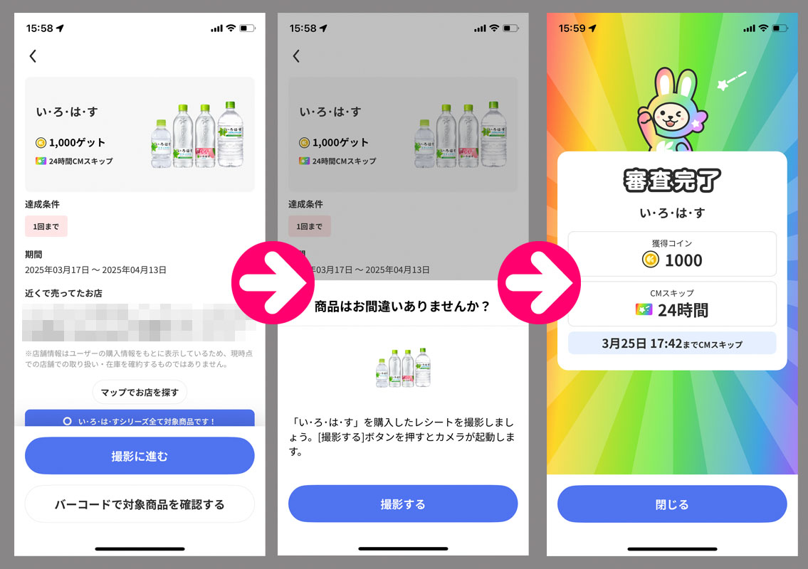「いろはす」はまだ審査中ですが合わせて21,000コインをGet!しました。