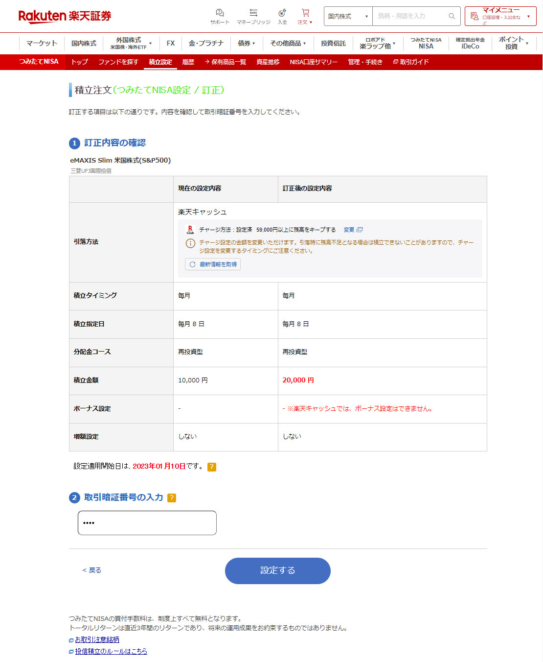 ただ毎月3万円の積立だとSPUが楽天証券分で0.5プラスになります。