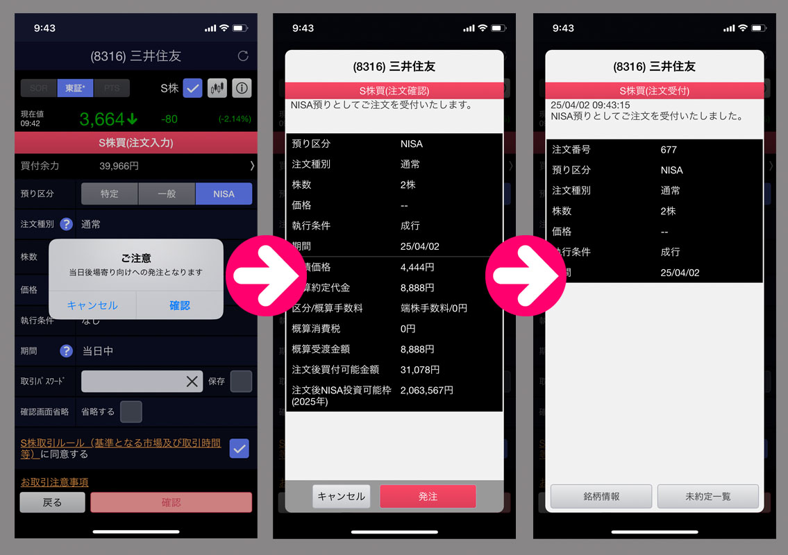 今朝、株価をチェックすると「三井住友フィナンシャルグループ」がかなり下げてるので2株だけ追加することにしました。