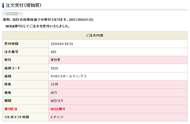 ENEOSは今回の買いでNISAと特定合わせ100株になり単元株主に(復帰w)なりました。
