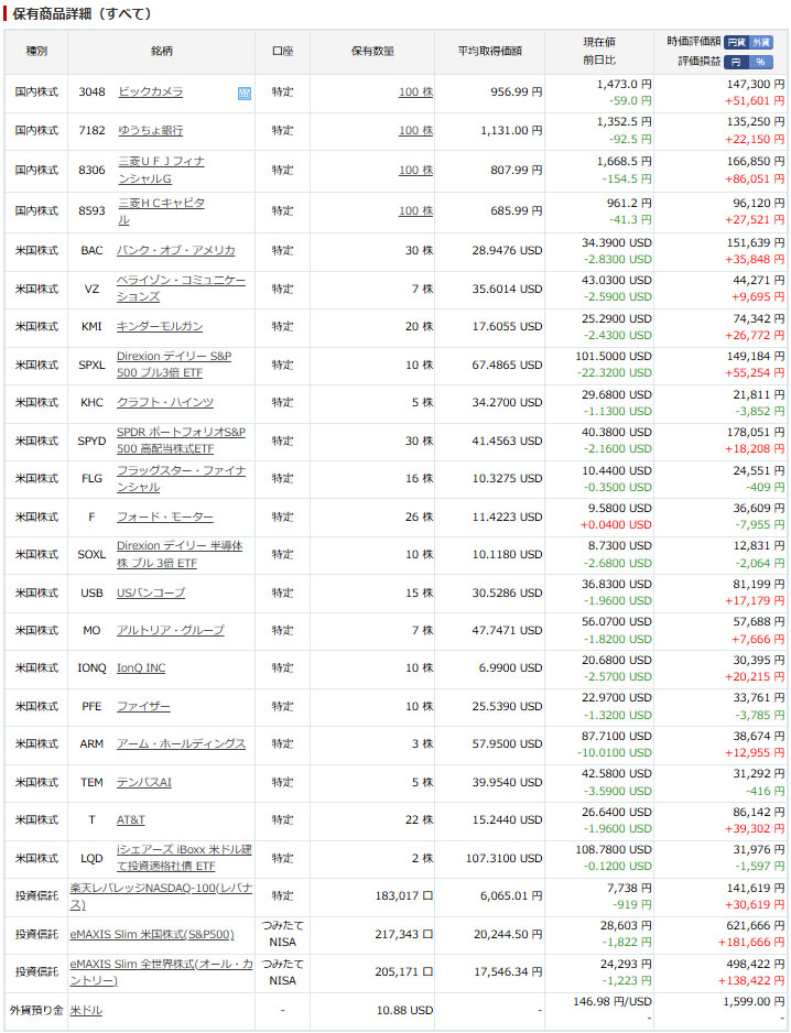 トータルではまだ9.34%の含み益があります。これがマイテンしたら大変ですが。。。