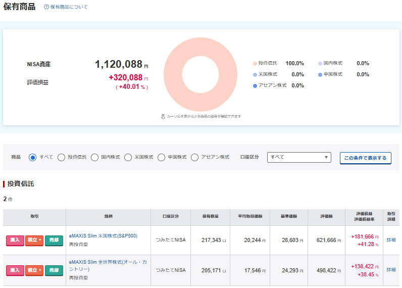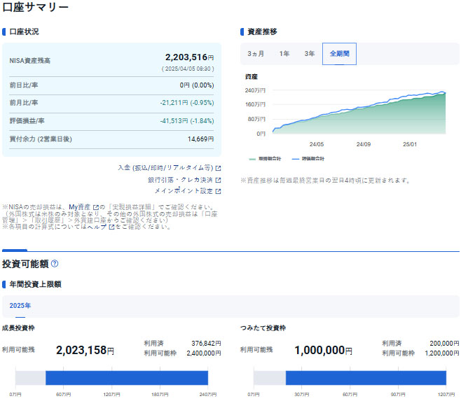動きのない楽天のNISA口座も米国のインデックスメインなのでこの1ヶ月で大きく下げました。
