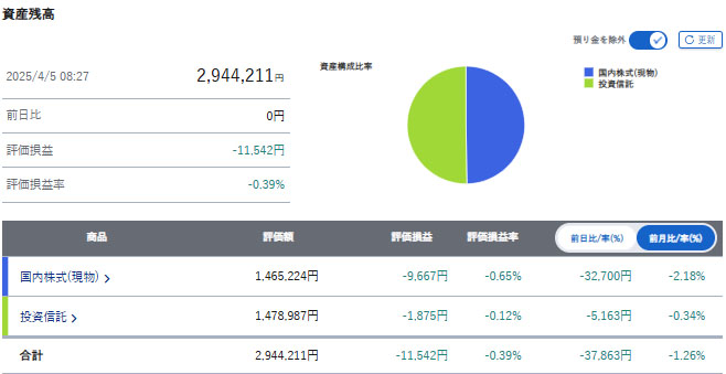 まぁ大きかったのはやはりトランプの相互関税の発表です。既に効力が発動されてるのか?知りませんがそれを受けて2日連続で東京もNYも暴落しました。私の資産も600を割り込んでしまった。