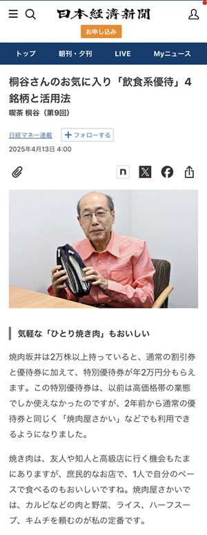 日曜日の夜・・・日経電子版を見ていたら株主優待で有名な桐谷さんのコラムがあり読んでみた。