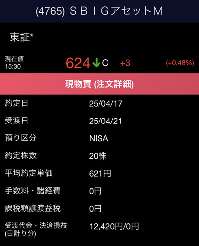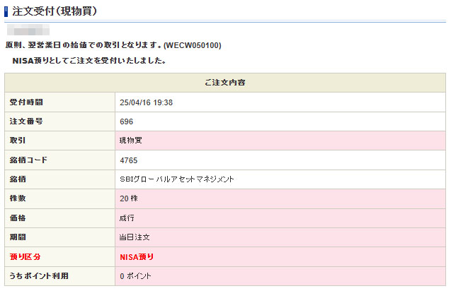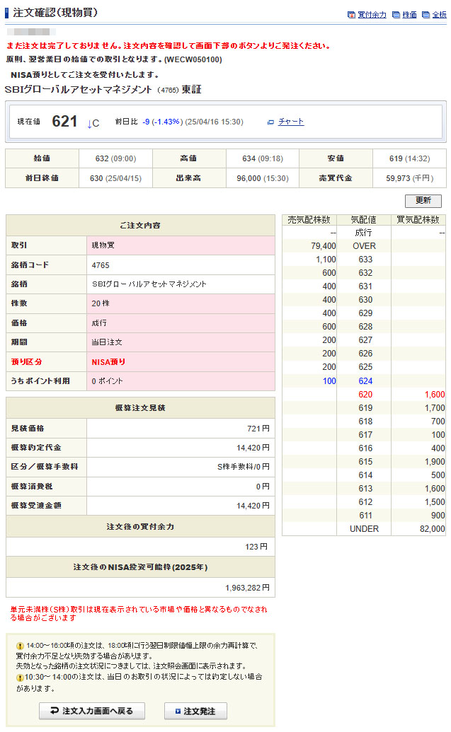 新規で「SBIグローバルアセットマネジメント」を20株買うことにしました。