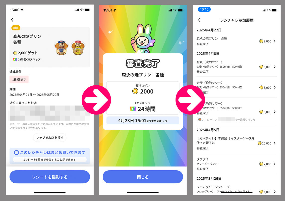 クラシルリワードのレシチャレ78 CMスキップが切れてしまったので久しぶりにレシチャレを・・・ 今回は以前もあった「森永の焼きプリン」です。 1日5回までですが今回は1回で・・・ローソンで購入しました。 即時、反映され24時間のCMスキップに・・・。 このプリン、美味しいことはおいしいけどやや高めなのと2,000コインなのでイマイチな感じ。 やはりコンピにではなくスーパーで買いたいところです。