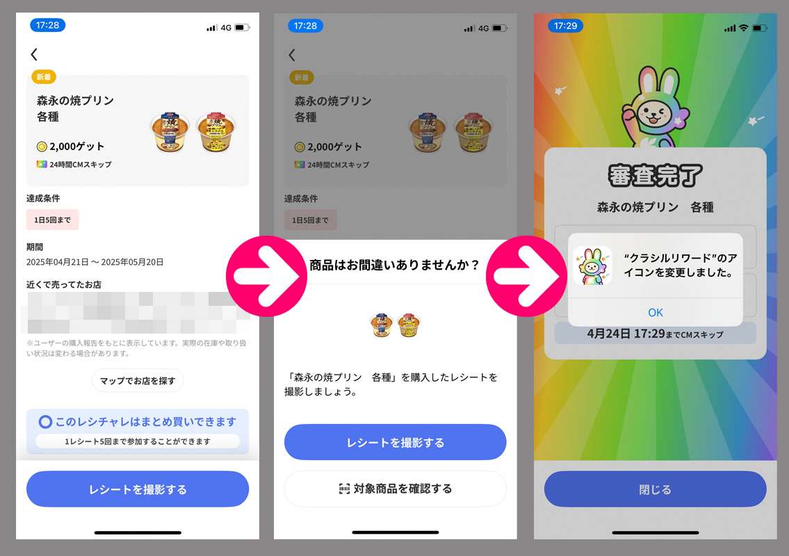 クラシルリワードのレシチャレ79 昨日に引き続き「森永の焼きプリン」でレシチャレに応募しました。 今回はスーパーで3個のまとめ買いです。 昨日と同様に即反映です。 これで4回目。 ちなみに ローソンでは168円(税別) イオンでは138円(税別)でした。やはりスーパーの方が30円も安い!