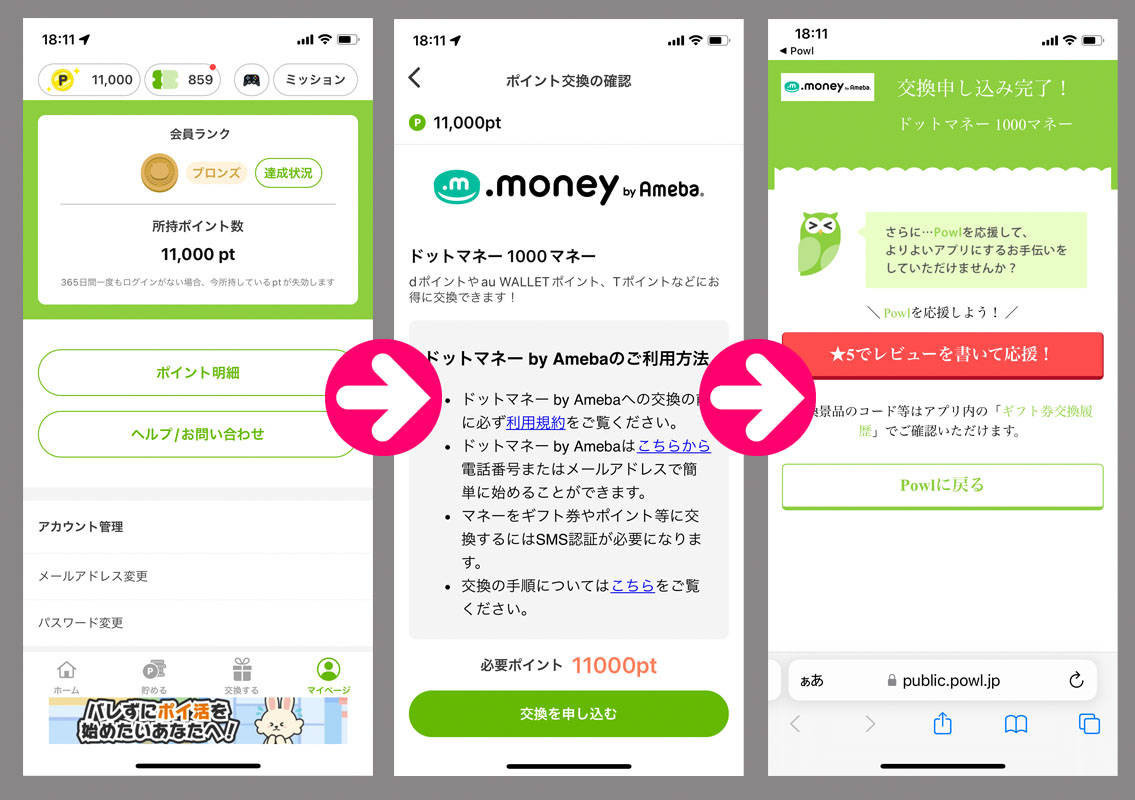 (Powlの換金方法の詳細はこちらをご覧ください)