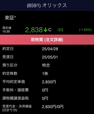 2,830円で約定しました。買付時から更に下げましたね~