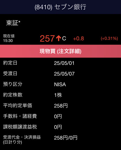 ですので「機種変代わりに」も「セブン銀行」1株と・・・。