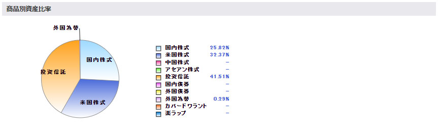 この円グラフは楽天口座だけなのでSBI証券を含めたポートフォリオを来月から掲載します。