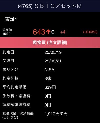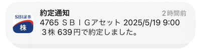 「ビックカメラ」からの配当を利用(再投資)して「SBIグローバルアセットマネジメント」を3株買うことにしました。少し足らない分は口座から・・・。