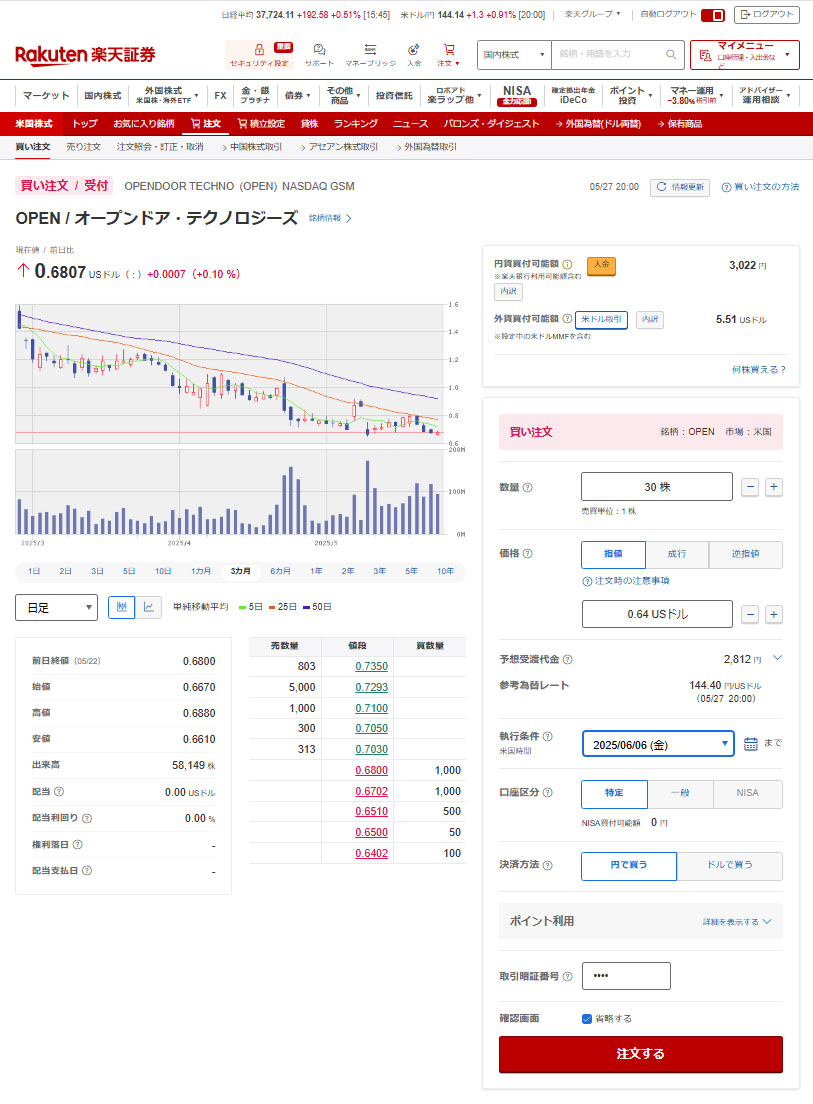 オープンドア・テクノロジーズ(OPEN)を30株買いました|2025.6.3