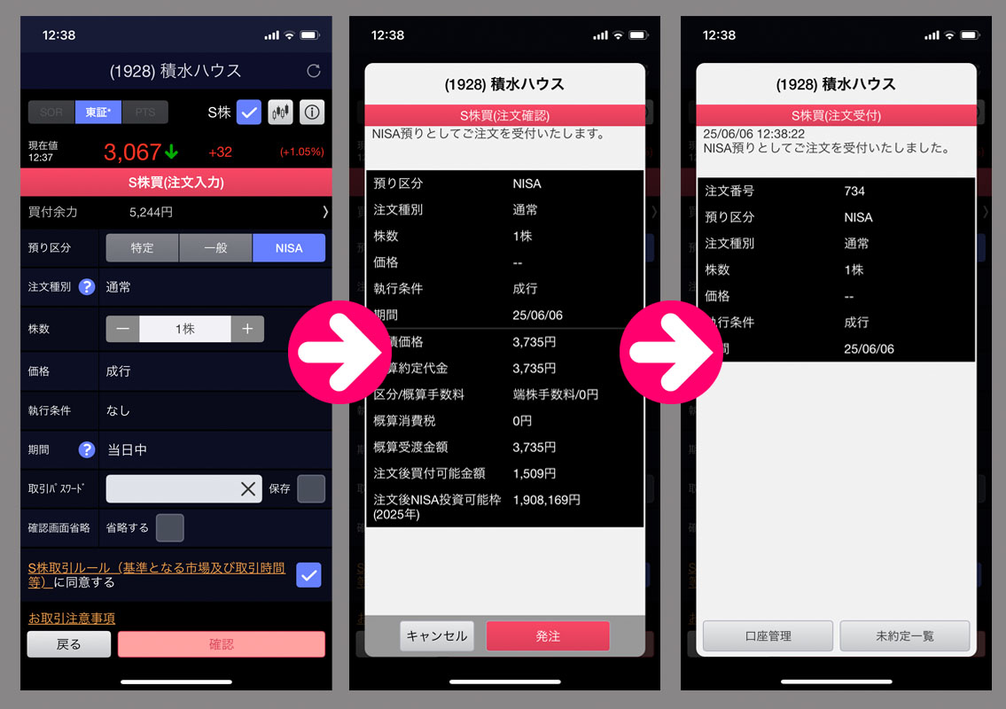 これで「積水ハウス」はNISA口座で8株保有となり平均取得単価は3,507円になりました。