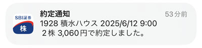 決算以降、株価が冴えない「積水ハウス」を2株追加します。