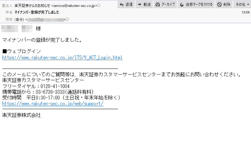 件名:【マイナンバー登録が完了しました】 メールが来ました!