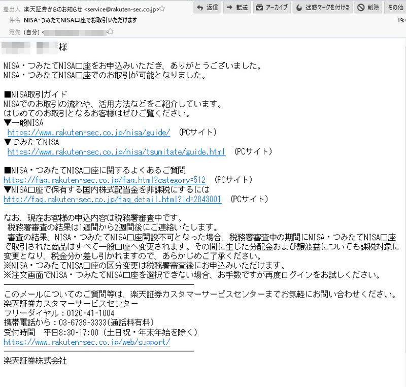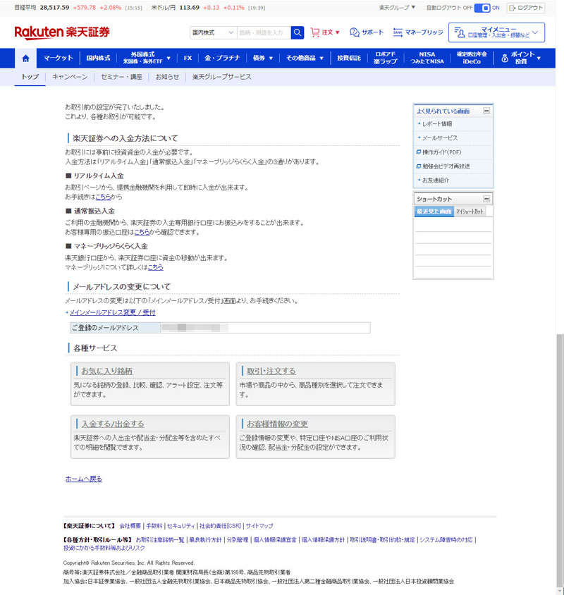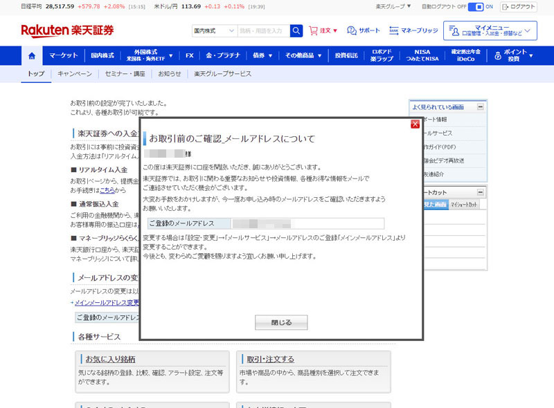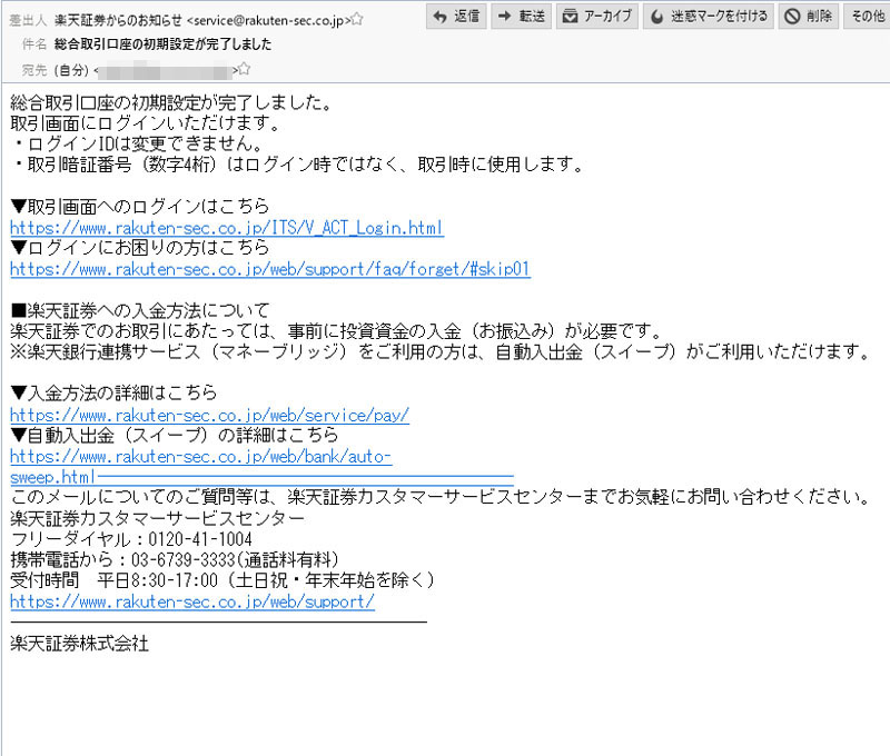件名:【総合取引口座の初期設定が完了しました】が届いていました!