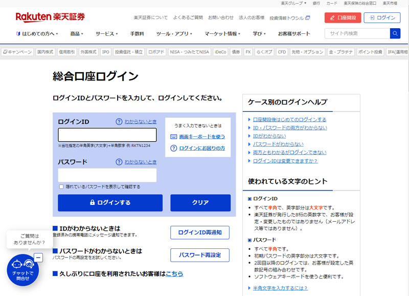 「取引画面へのログインはこちら」から楽天証券のホームページへ