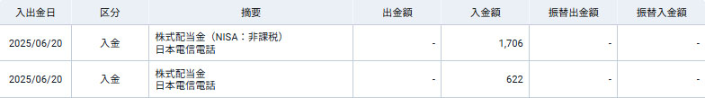 今日、総会だった「日本電信電話」から明日20日に配当が入るようです。