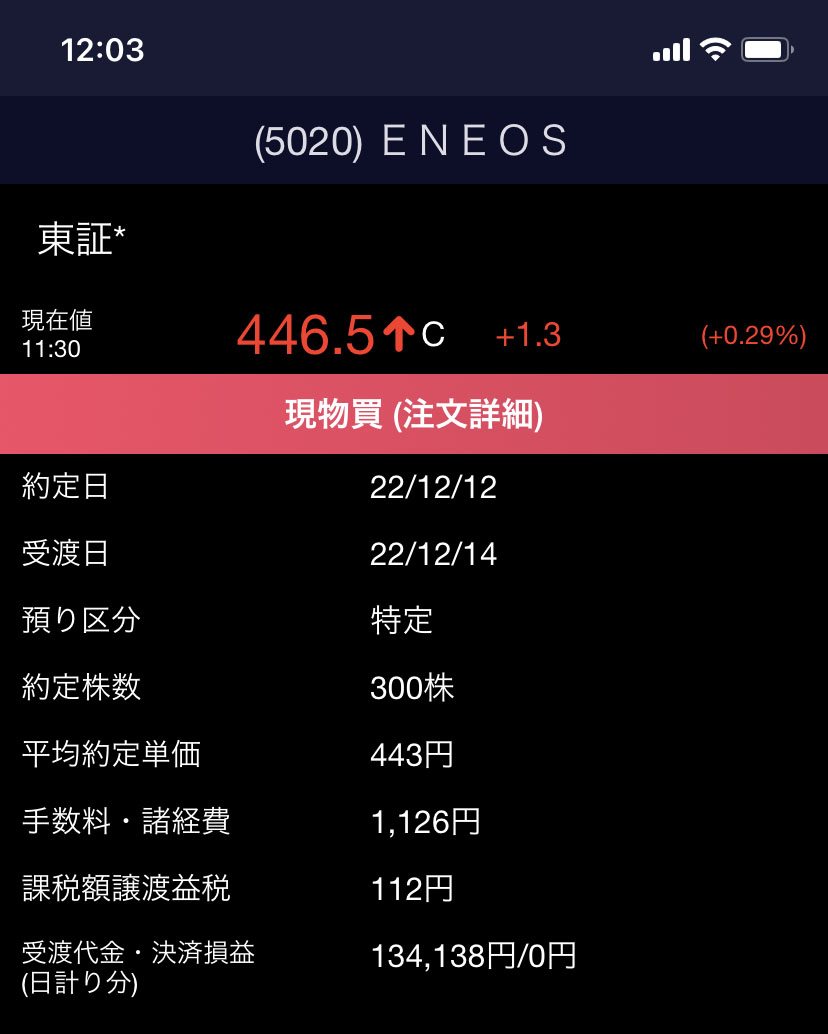 ENEOSホールディングス(5020)約定しました