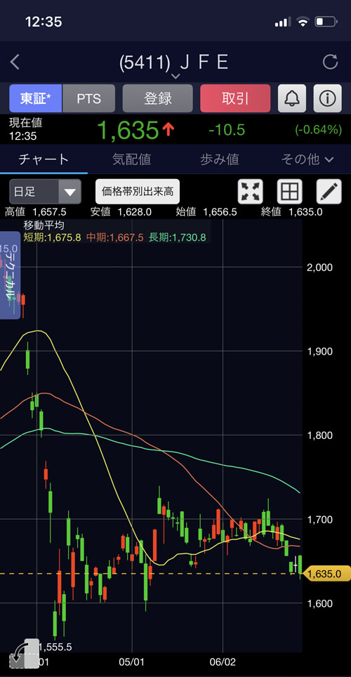 お昼に株価チェックをしていると「JFEホールディングス」もやや大きめに下げていたので2株追加する事にしました。