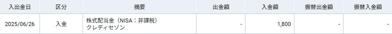 明日、6月26日(木曜日)にクレディセゾンから配当が入るようです!