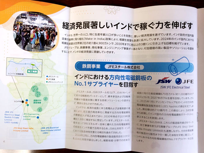 成長過程において鉄鋼消費は増大するでしょうしインドは中国とは距離を置いてるしチャンスなのかもしれない。日鉄に負けないで欲しい。「方向性電磁鉄鋼」って全く知りませんがニッチな分野ならNo.1も現実性はあるのかも?