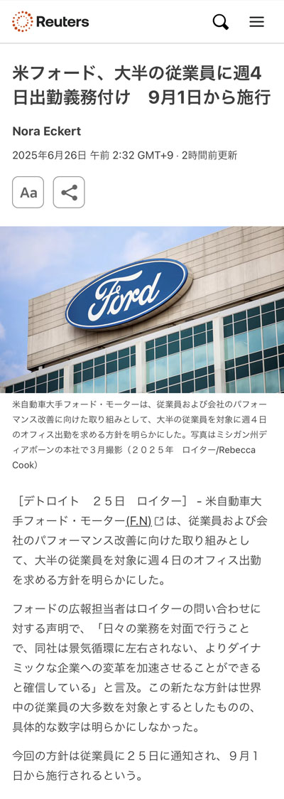 フォード|週4日出勤義務付け