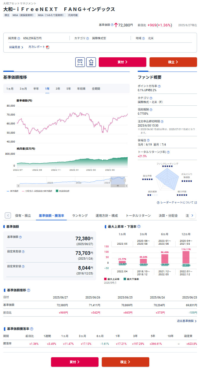 こちらは「iFree NEXT FANG+インデックス」なのでSBI証券のNISA(成長投資枠)です。