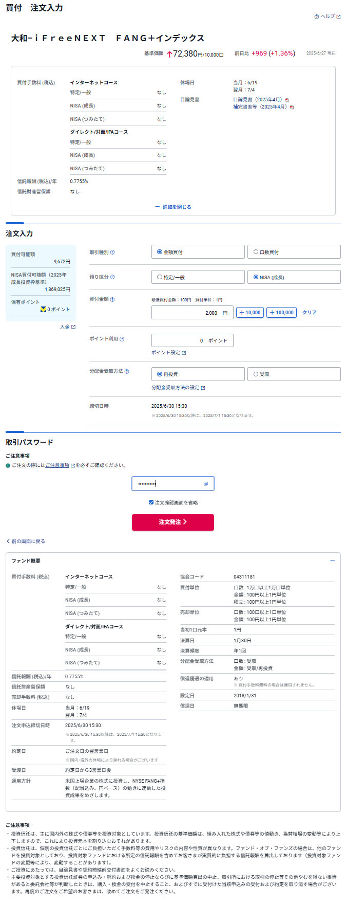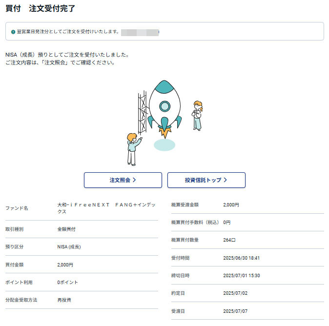 ここからはおなじみの投信の注文画面。