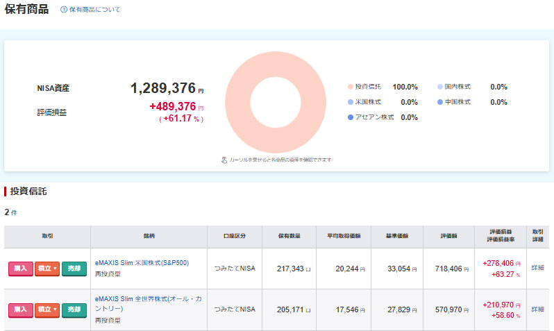 S&P500が高値更新してますので放置の楽天NISA口座も含み益が増えました。