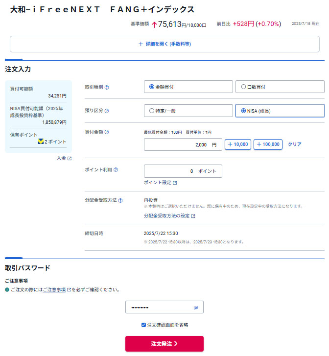 iFree NEXT FANG+インデックスを2,000円分買いました|2025.7.21
